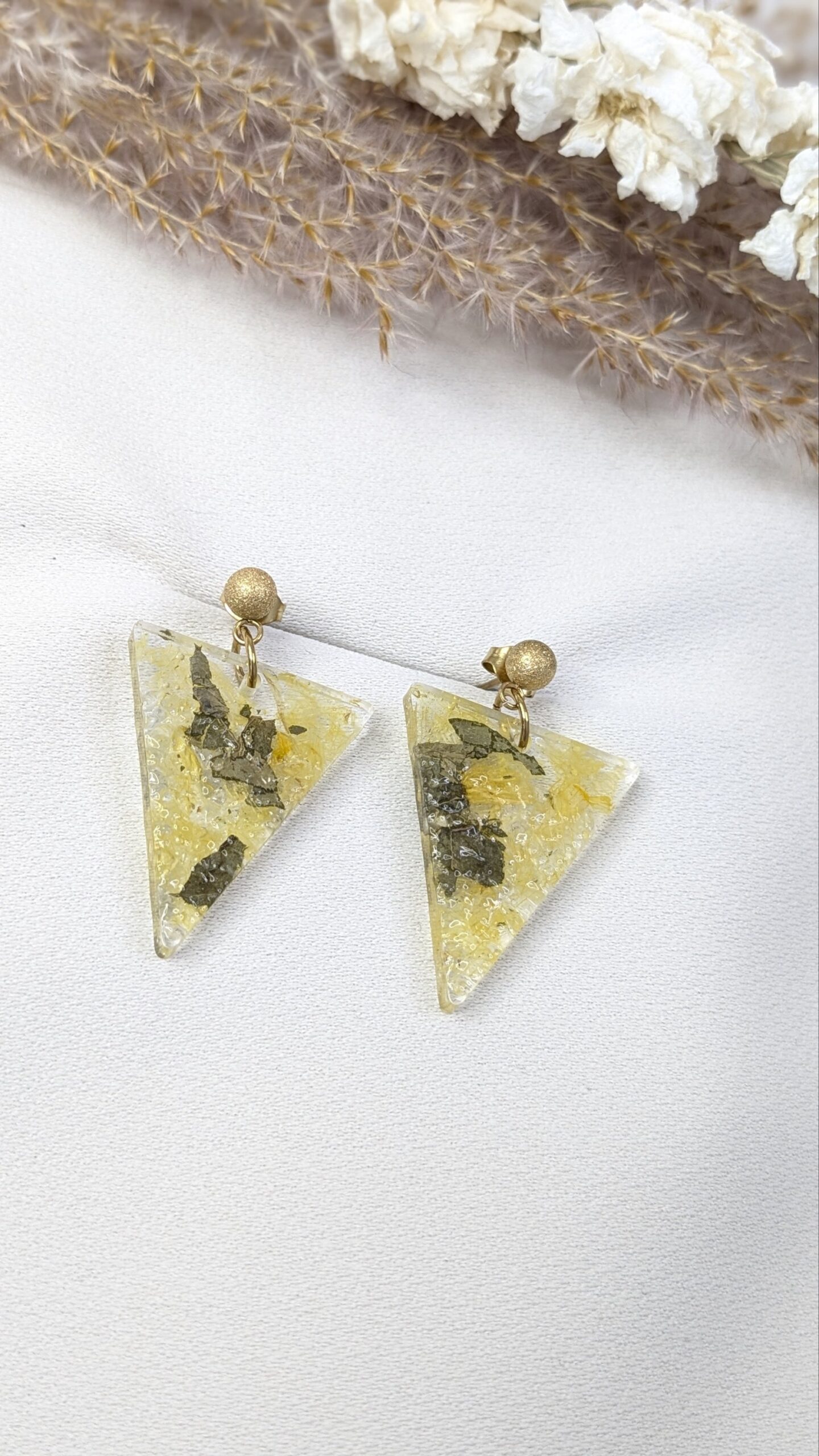 Boucles d’oreilles en fleurs séchées issues de mon jardin, montées à la main dans une résine transparente. Chaque modèle est unique, inspiré de la nature et des saisons.