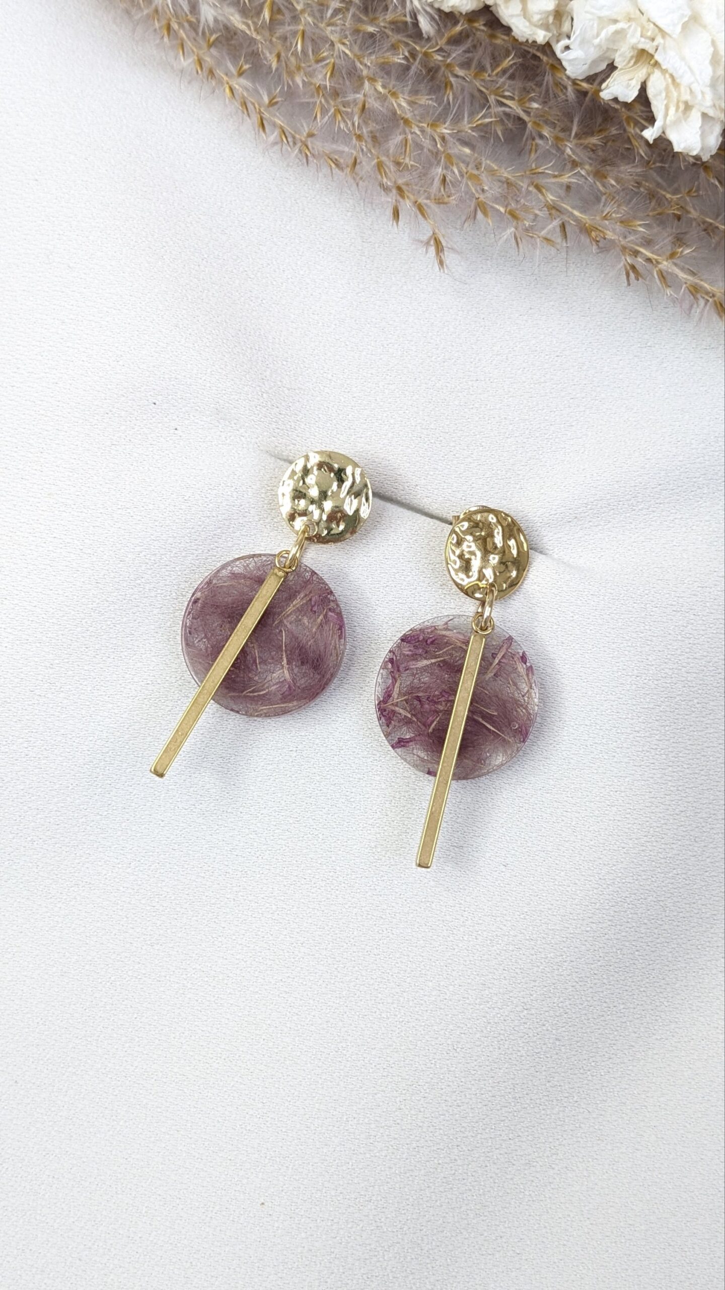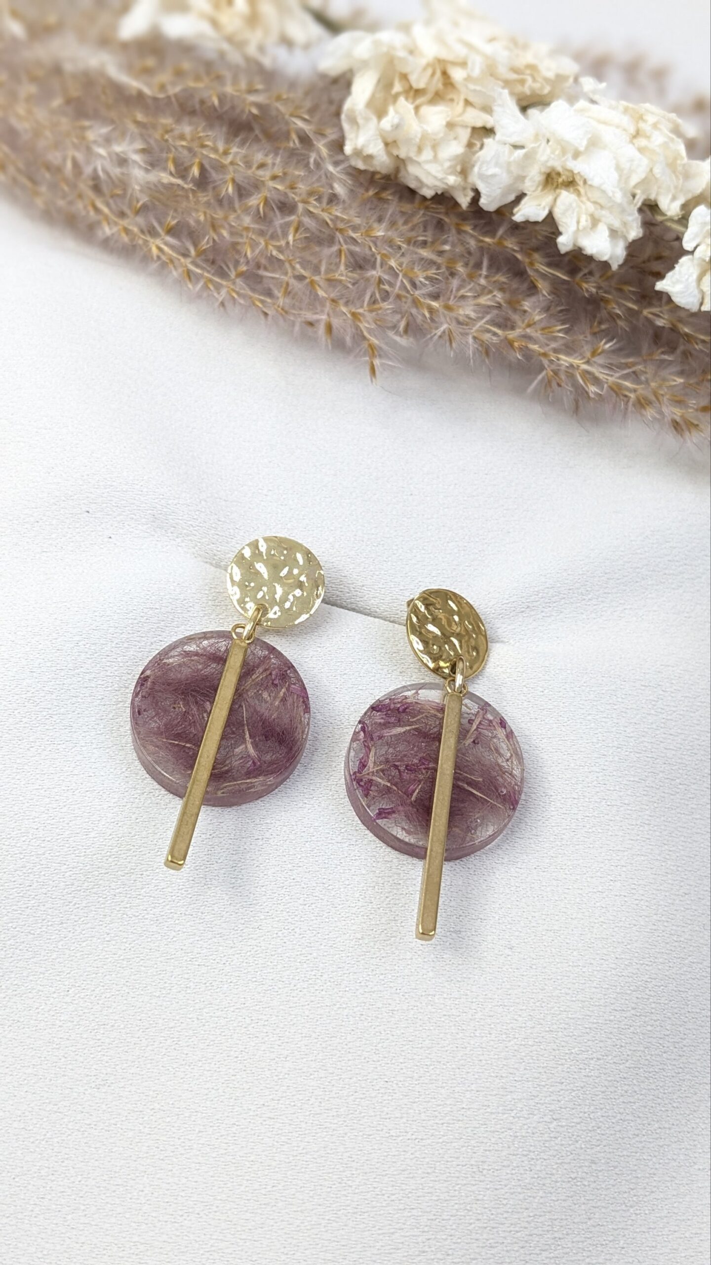 Boucles d’oreilles en fleurs séchées issues de mon jardin, montées à la main dans une résine transparente. Chaque modèle est unique, inspiré de la nature et des saisons.